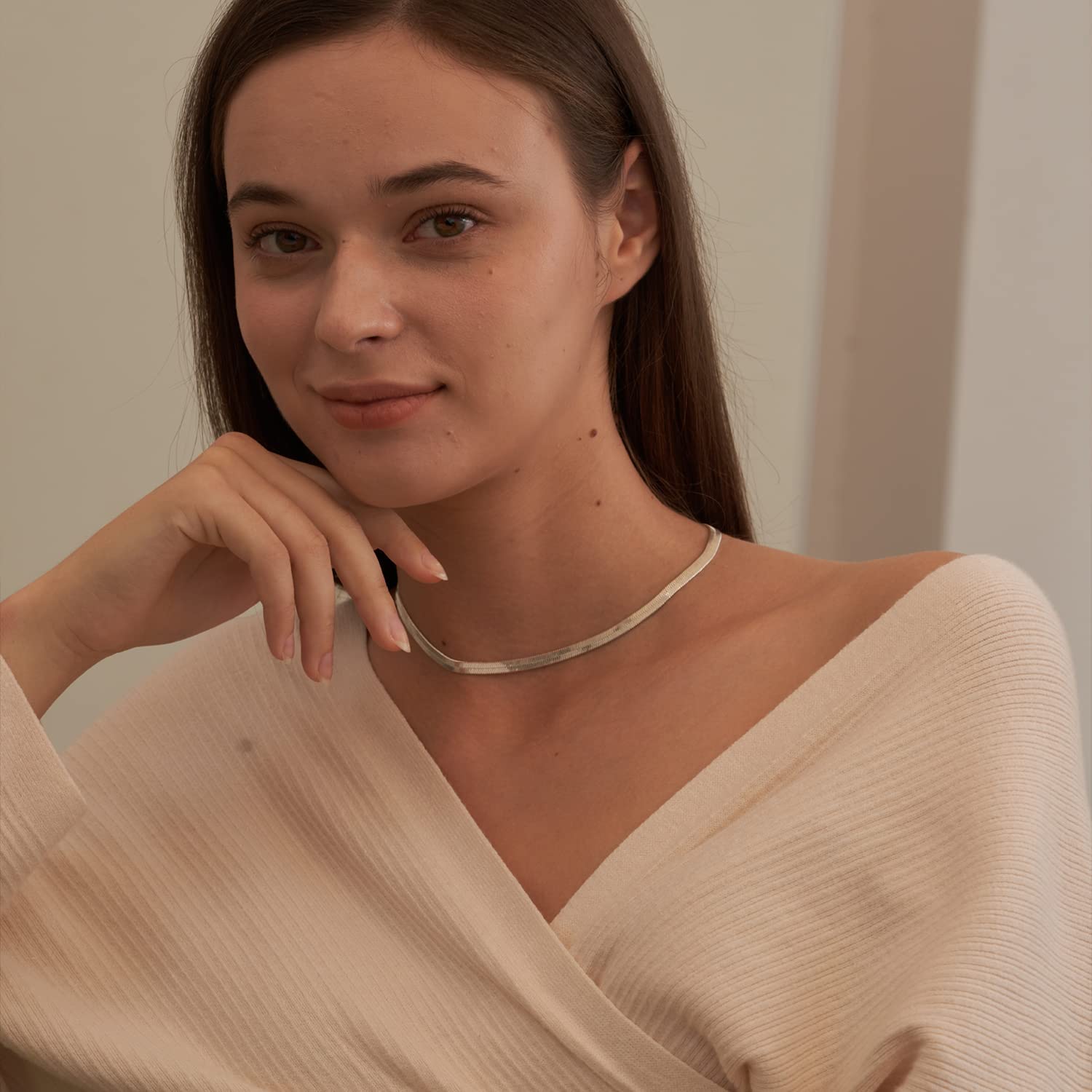【Herringbone Necklace Material 】:Made of handpicked brass, and plated in 14k gold to ensure a long lasting finish that is tarnish-resistant,nickle free, lead free, and hypoallergenic, Reduces concerns about sensitive skin and product quality issues